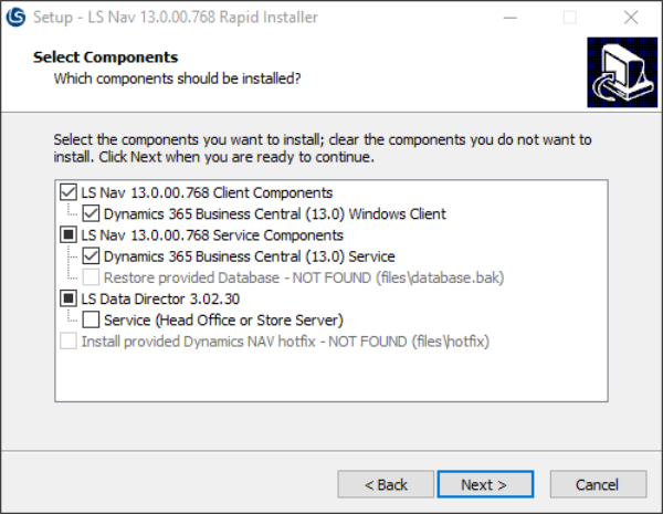 When the service components are selected, a new MSSQL Express database instance is created named LSCentral if it does not already exist and if a database is to be restored, it will also be named LSCentral.