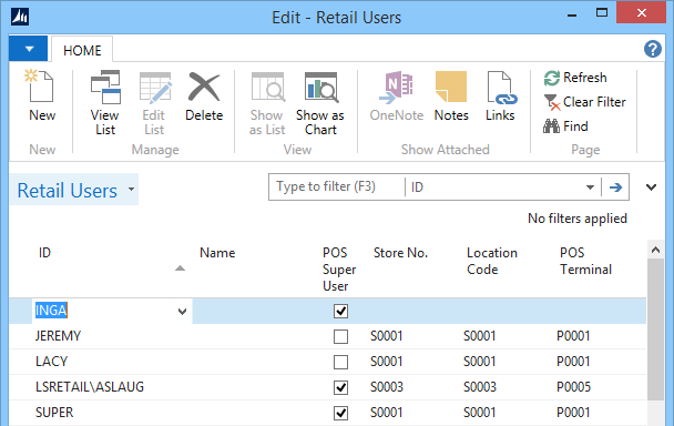 Retail Users can be found in LS Retail - POS - Retail Users.