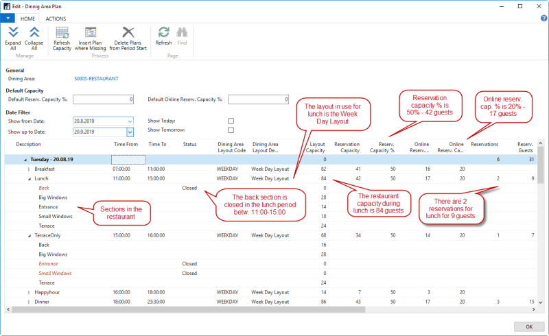 - After closing or opening a period or day plan, you need to press Refresh Capacity to let the program recalculate the reservation capacity and online reservation capacity.