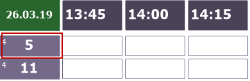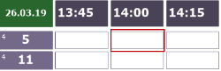 select an interval button in the dining table row as long as it is free. If the interval is not the first interval, the program will change the reservation time to the interval time.