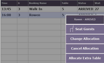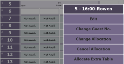 - the Reservation/Waiting List grid - where change and cancellation applies to all allocated tables.