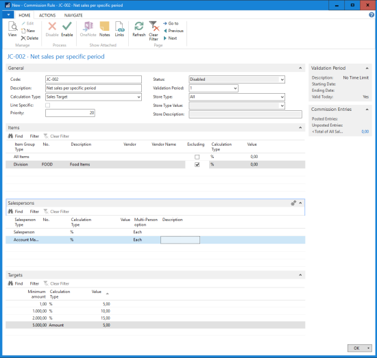 - Open the Commission Rule page (LS Retail - BackOffice - Sales & Marketing - Sales Commission - Rules).
